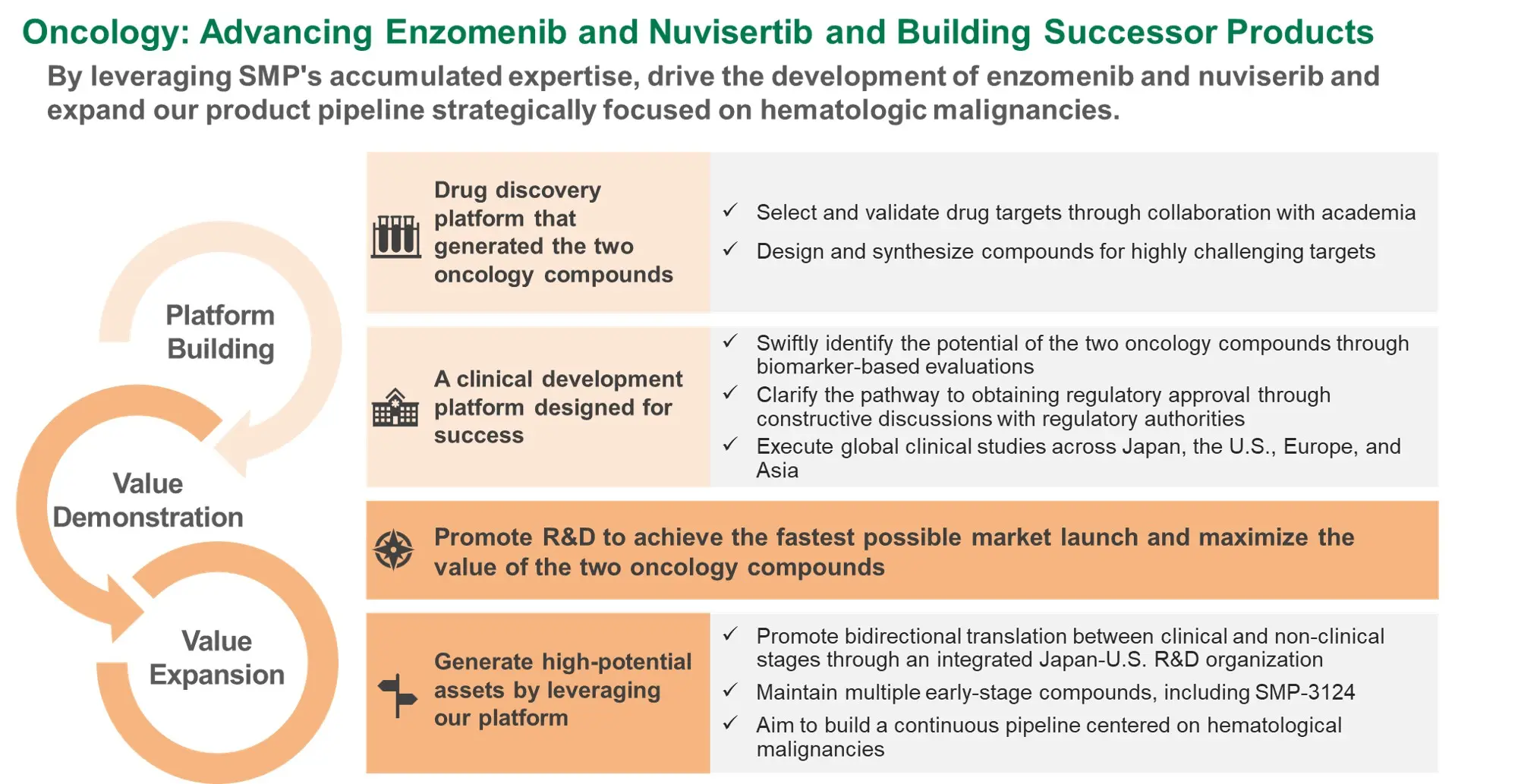 • Fastest possible market launch and expanding value of the two oncology compounds